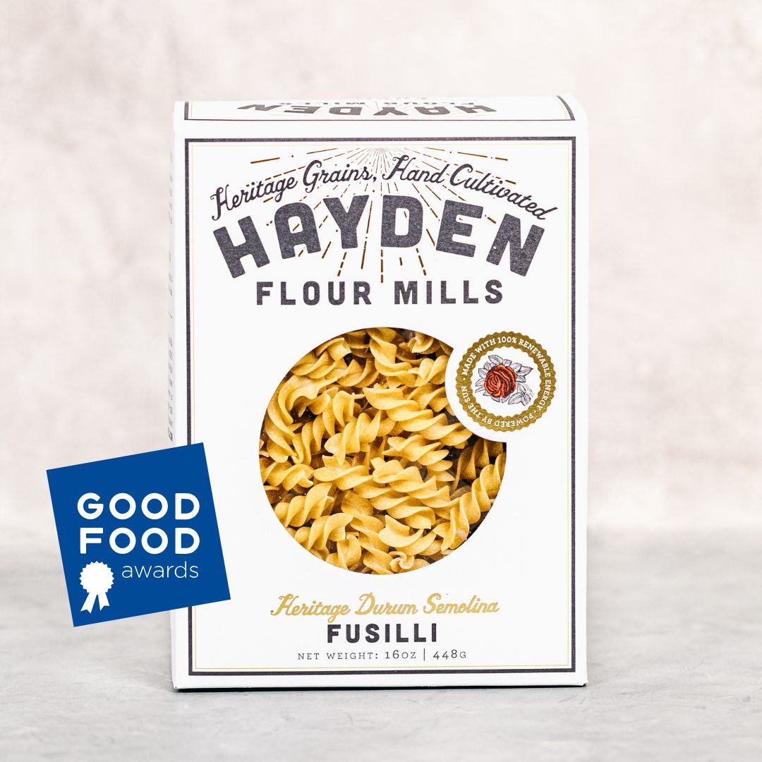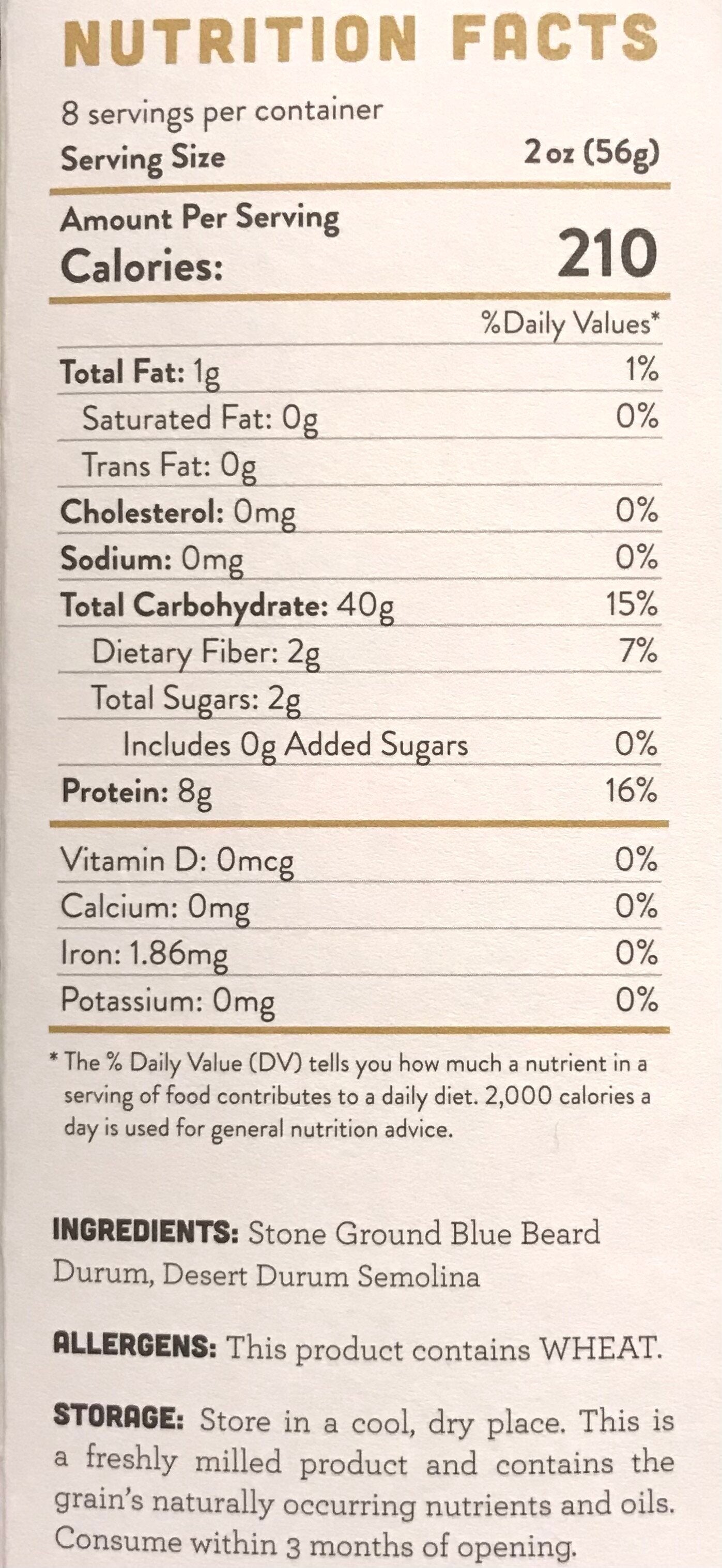 Our artisan pasta features stoneground Blue Beard Durum Semolina, a wheat variety that thrives in our arid desert climate. After mixing our durum semolina with cold water, we extrude the pasta through a chilled bronze die to preserve all the flavor and goodness of the grain and use a slow-drying method to enhance the texture.