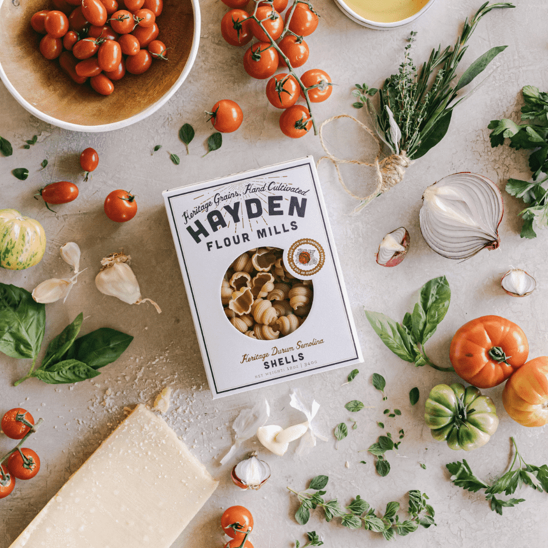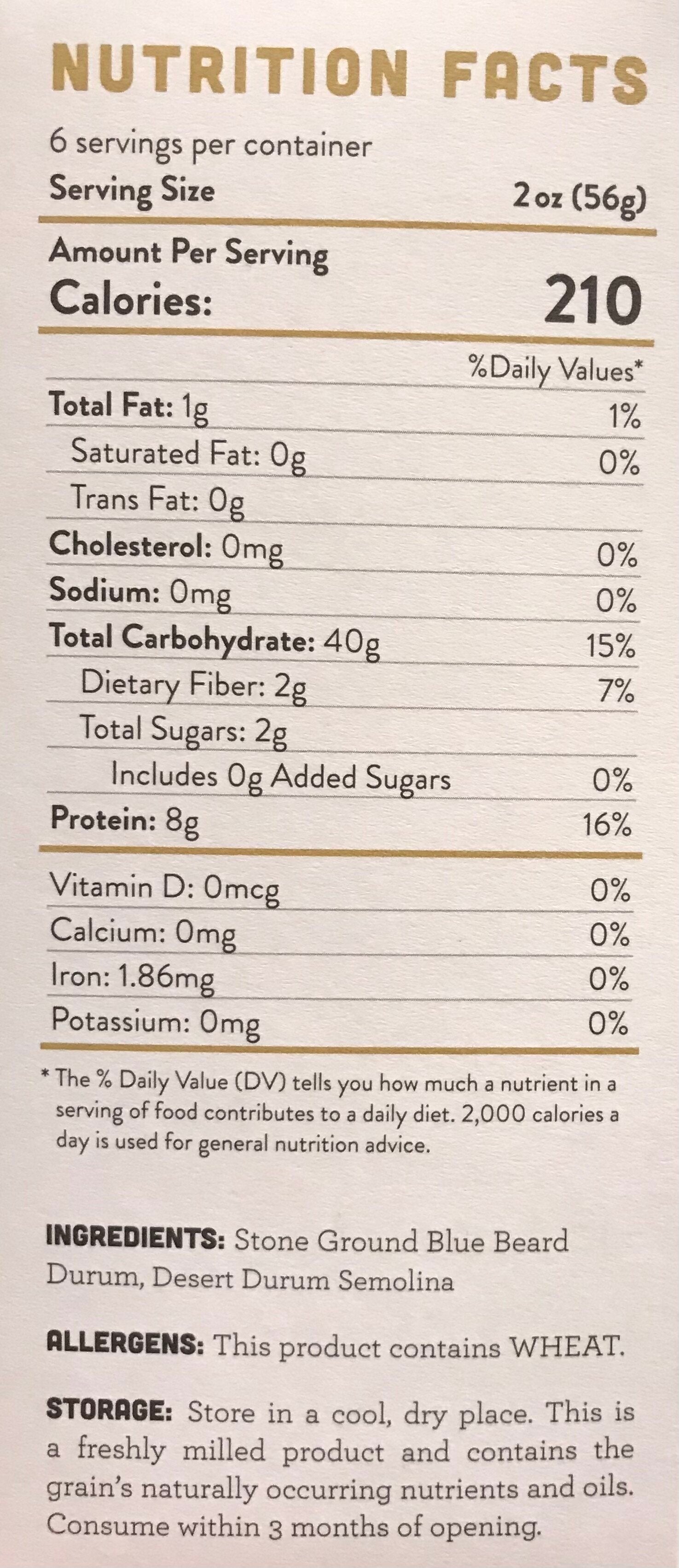 Our artisan pasta features stoneground Heritage Durum Semolina, a wheat variety that thrives in our arid desert climate. After mixing our durum flours with cold water, we extrude the pasta through a chilled bronze die to preserve all the flavor and goodness of the grain and use a slow-drying method to enhance the texture.
